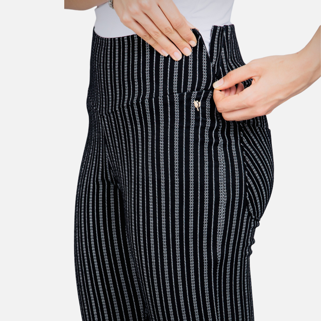 The Striped Black and White Stretch Trousers: Design & Details