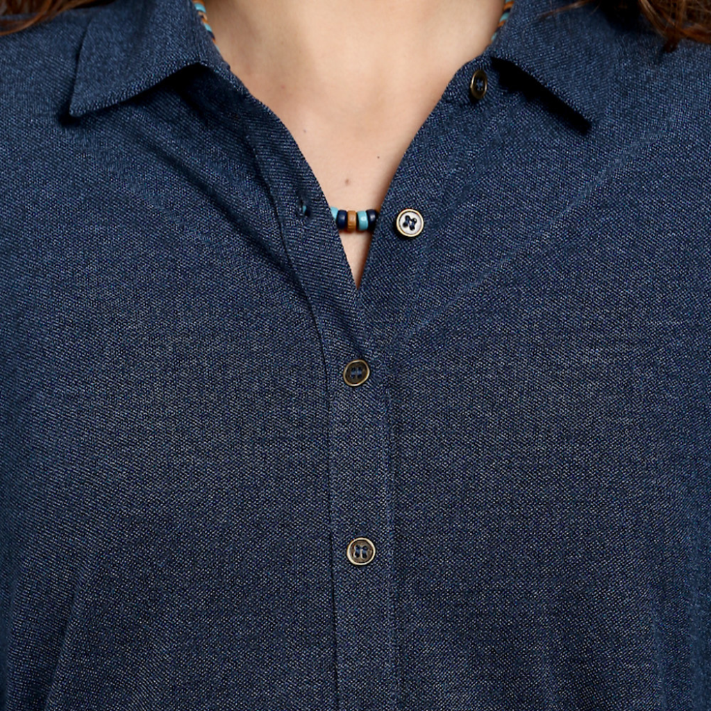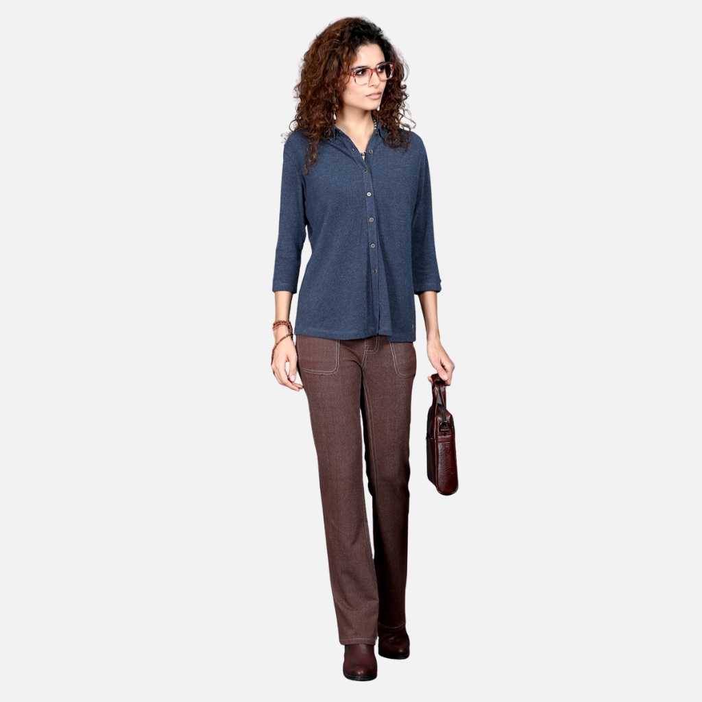 The Tulip Comfort Wear Blue Dual Tone Stretch Shirt is designed for the woman who balances a busy schedule with a need for ease. It offers a clean structured look that transitions naturally from morning meetings to evening social hours. Crafted from a premium cotton rich stretch fabric, this shirt provides a vibrant blue hue with a sophisticated dual-tone finish and the soft, breathable feel needed for all-day wear.