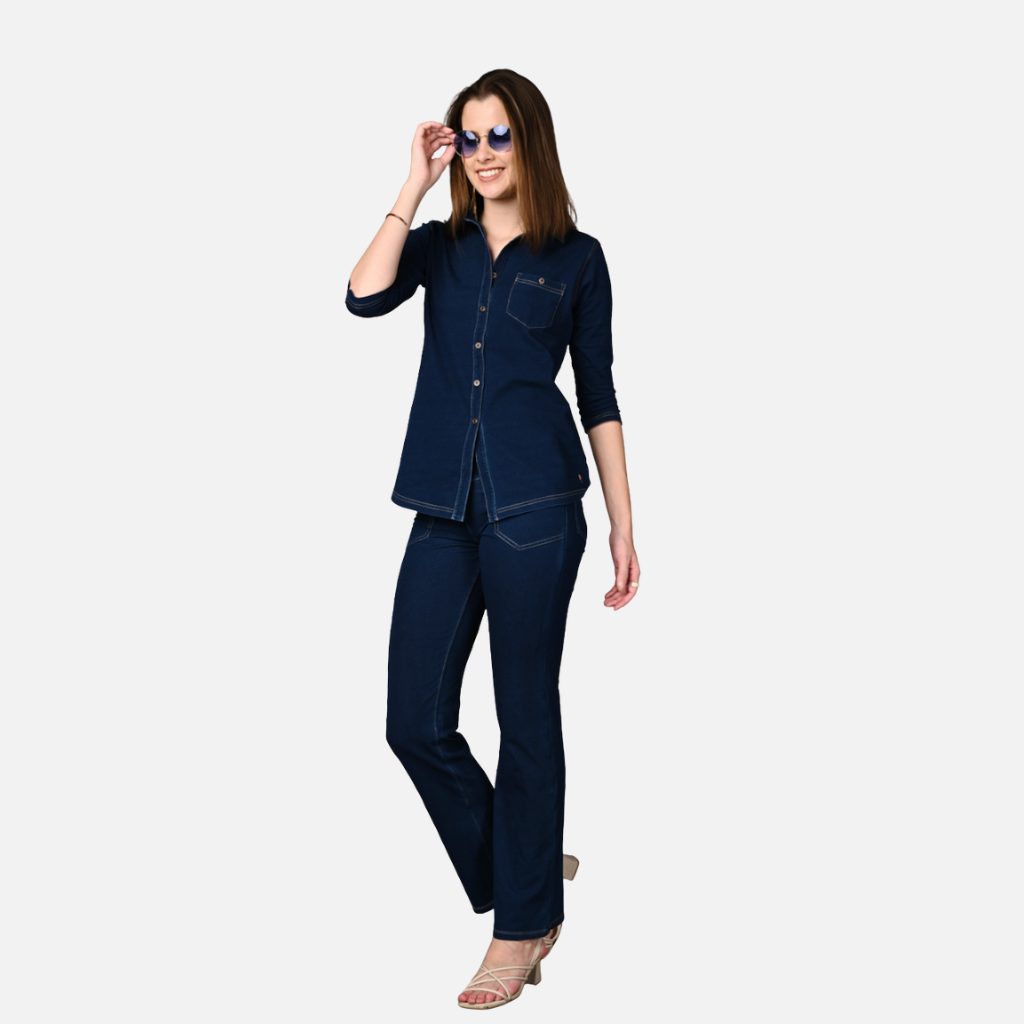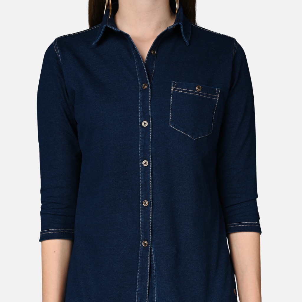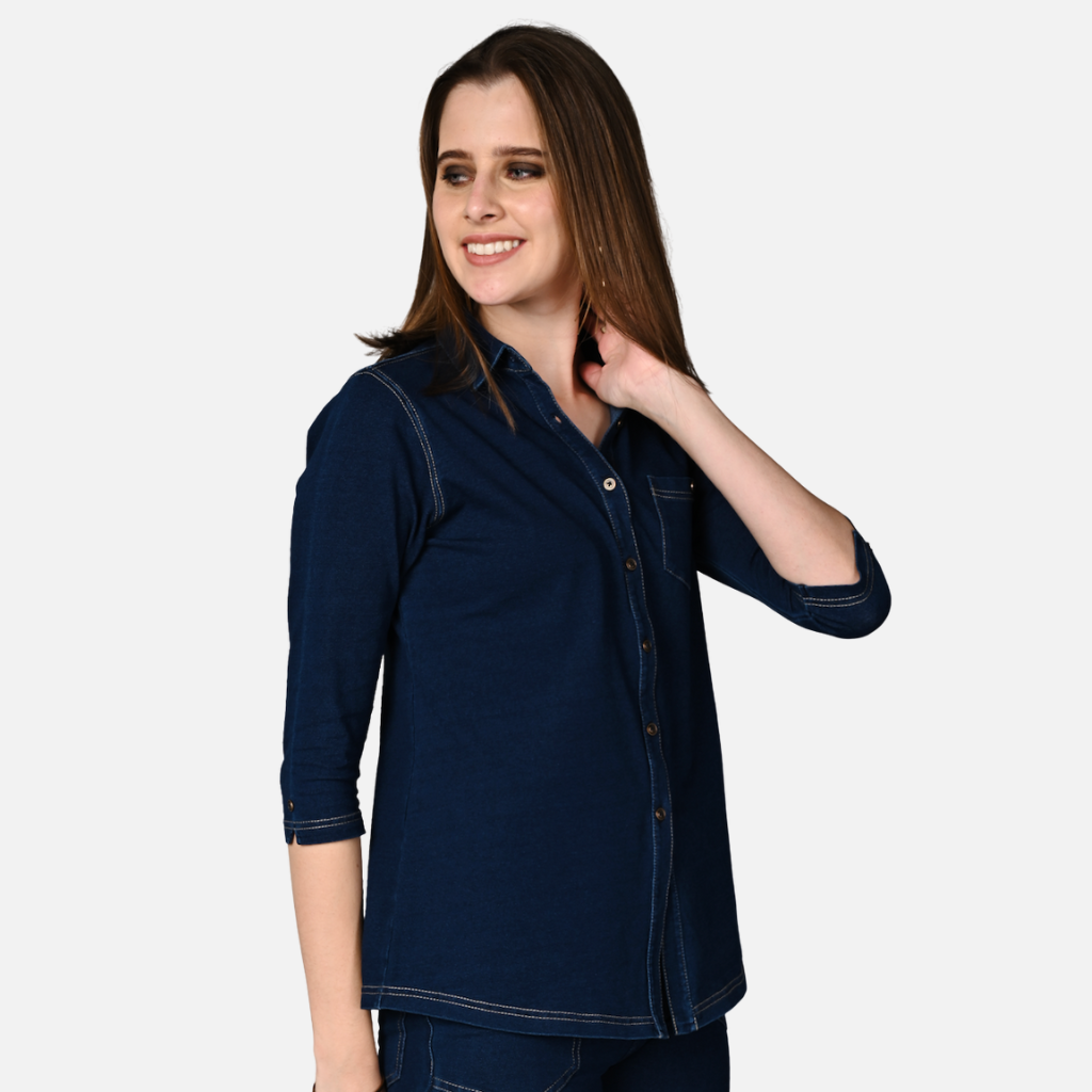 The Tulip Comfort Wear Denim Indigo Cotton Stretch Shirt is designed for the woman who balances a busy schedule with a need for ease. It offers a clean structured look that transitions naturally from morning meetings to evening social hours. Crafted from a premium stretch cotton rich denim fabric this shirt provides the timeless appeal of indigo with the soft breathable feel needed for all day wear.
