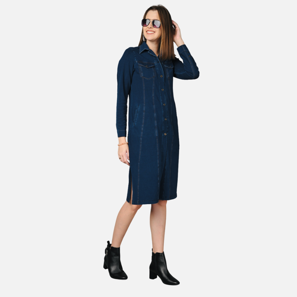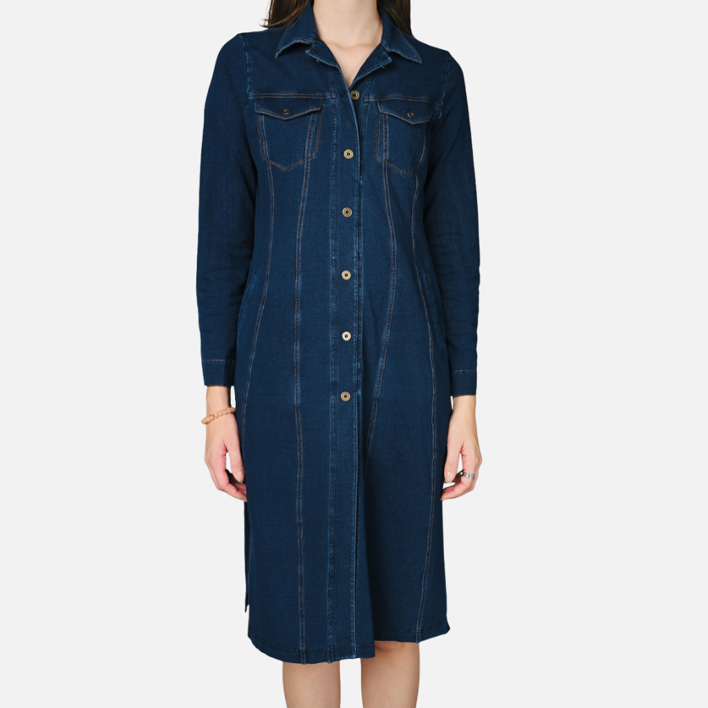 The Tulip Comfort Wear Denim Indigo Stretch Classic Stitch Dress is designed for the woman who balances a busy schedule with a need for ease. It offers a clean, structured look that transitions naturally from morning errands to evening social hours. Crafted from a premium cotton rich denim fabric with added stretch, this dress provides the timeless appeal of authentic indigo with a soft, flexible feel that moves with you.