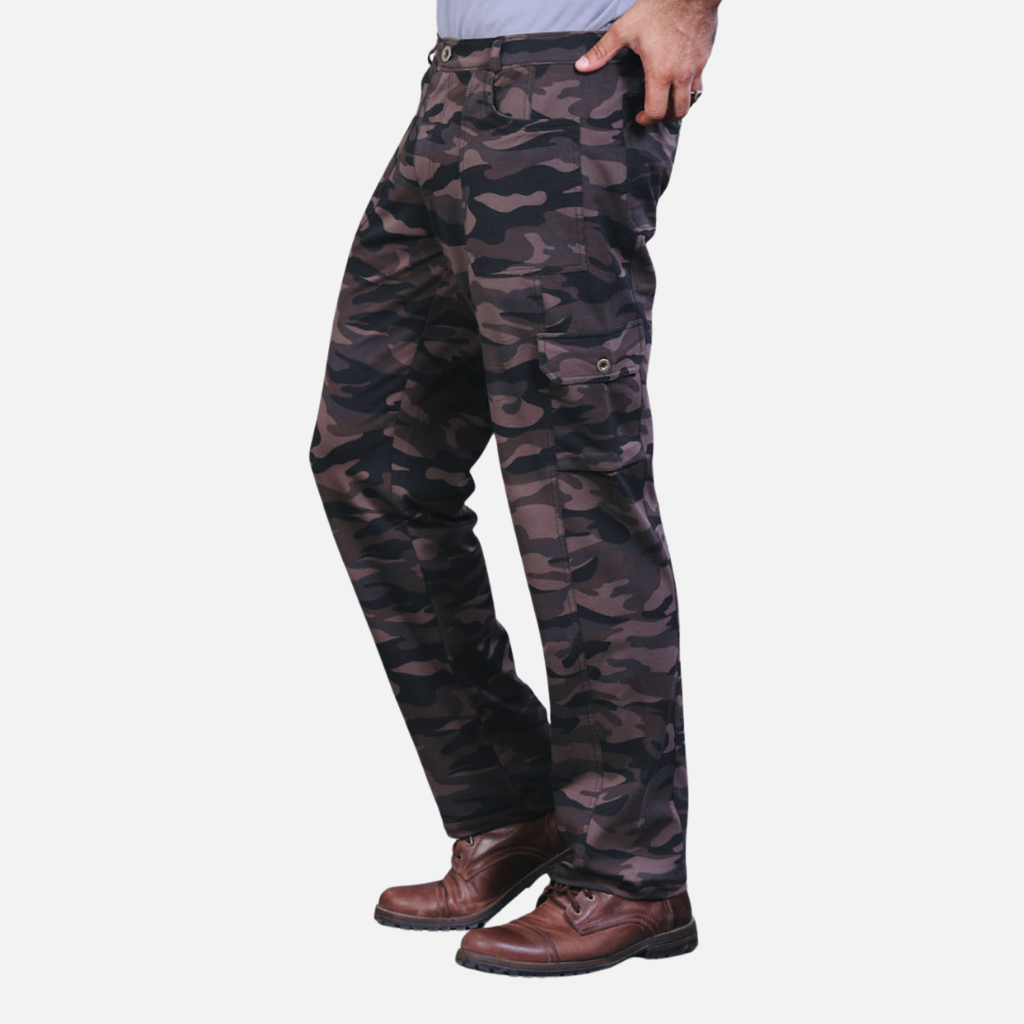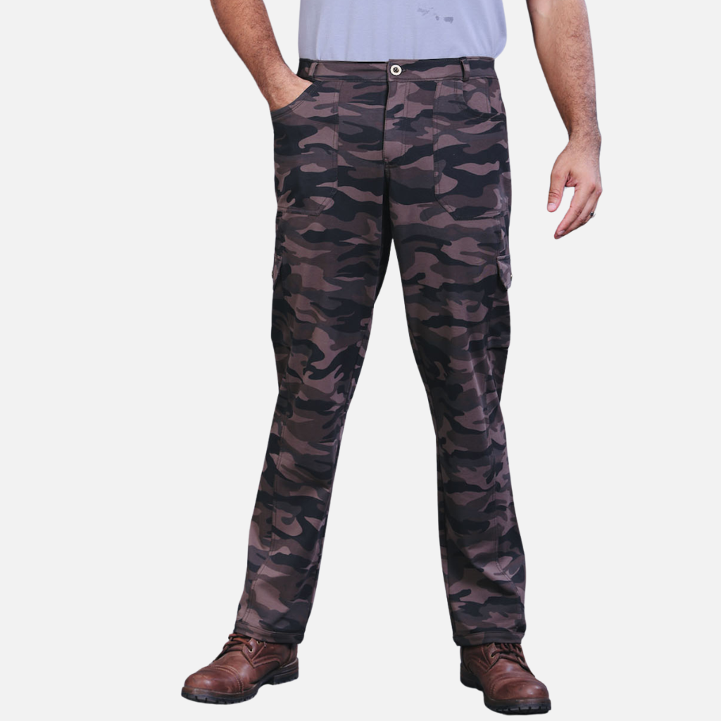 The Tulip Comfort Wear Men’s Grey Camouflage Stretch Cargo Pants are built for the man who values utility without compromising on style. Bringing an adventurous, urban edge to the classic cargo silhouette, these pants are crafted from a premium cotton-rich stretch fabric. The sophisticated grey-scale camouflage print offers a modern, understated take on the military aesthetic, while the expansive storage and four-way stretch make them the ultimate companion for a high-activity lifestyle.