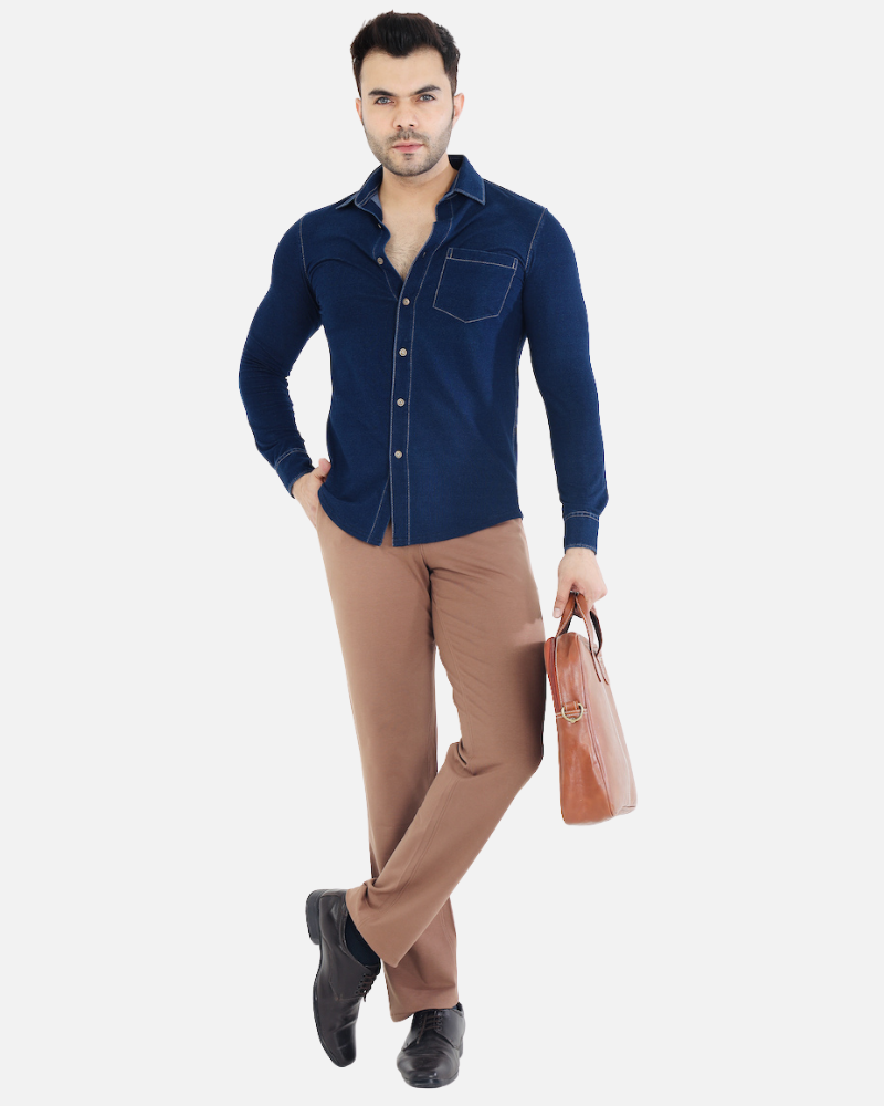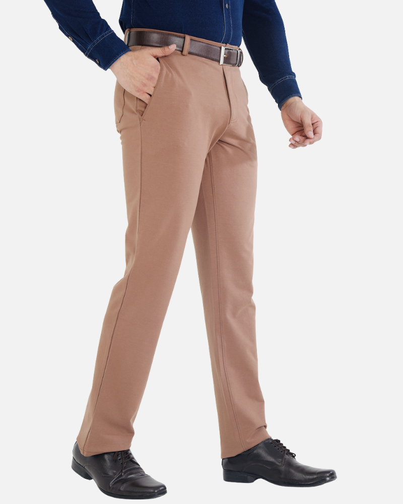 Men's Dark Beige Stretch Cotton Rich Formal Pants