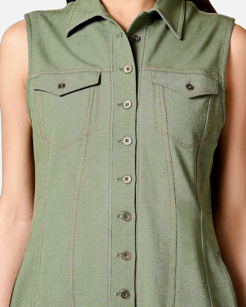 Sage Green Sleeveless Jacket Shirt