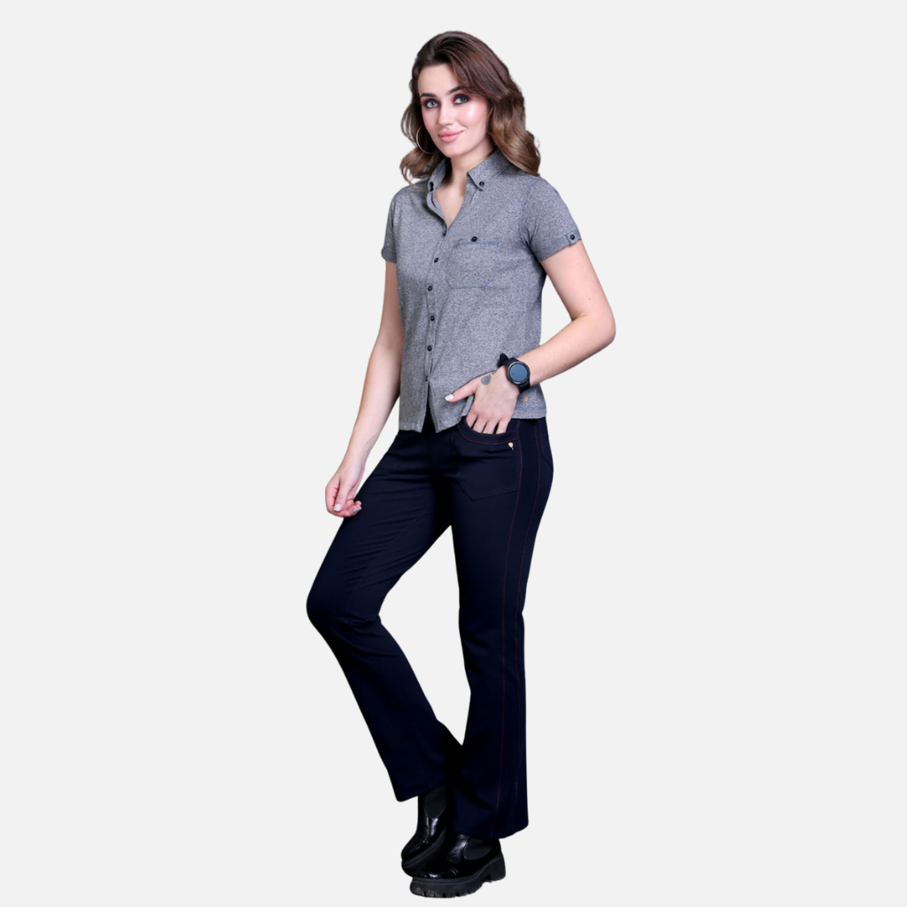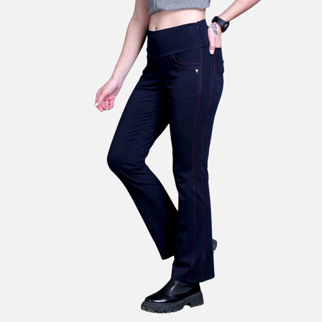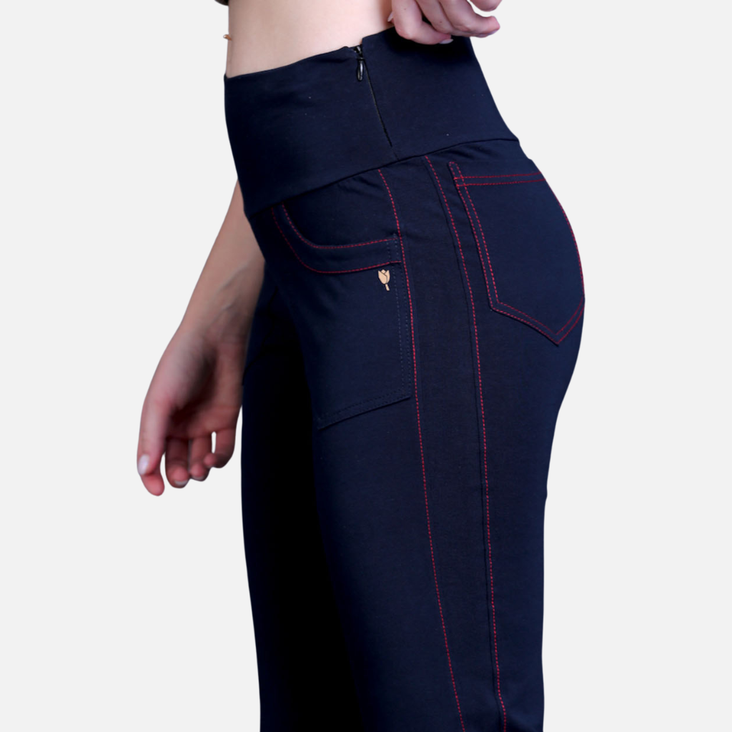 The Navy Stretch Pants - Red Thread Detail & Bootleg Fit: Design & Details