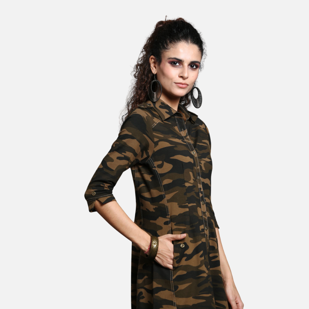 The Khaki Camouflage Defender Dress with Side Pockets: Design & Details
