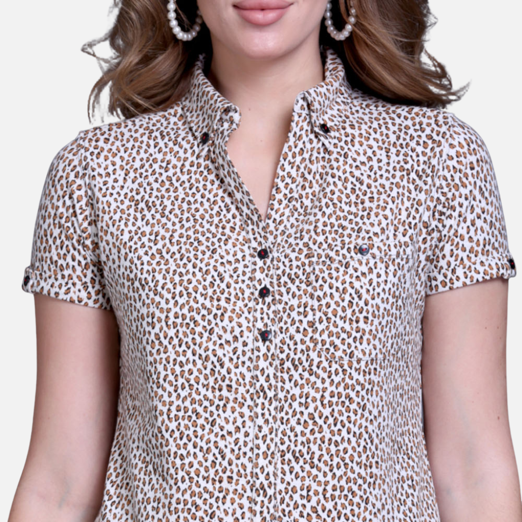 The Light Leopard Print Stretch Cotton Shirt Top: Design & Details