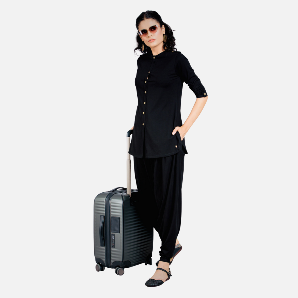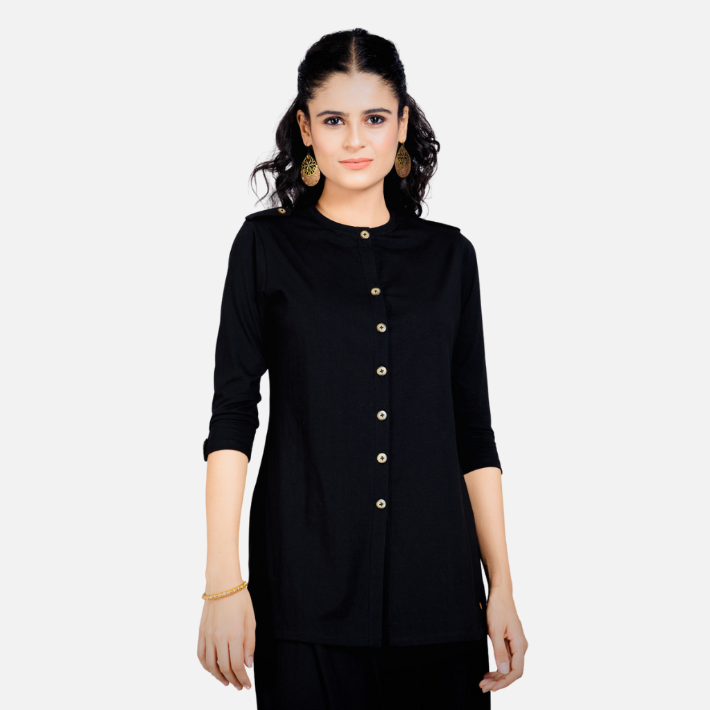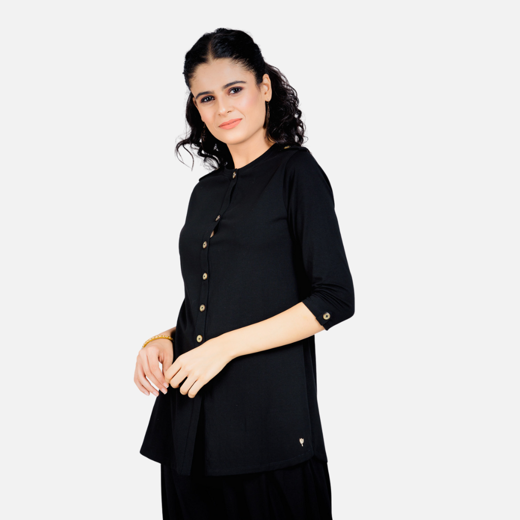 The Tulip Comfort Wear Black Long Round Neck Kurta Top is designed for the woman who balances a busy schedule with a need for ease. It offers a clean structured look that transitions naturally from morning errands to evening social hours. Crafted from a premium cotton rich stretch fabric, this top provides a timeless, slimming profile with the soft, breathable feel needed for all-day comfort.
