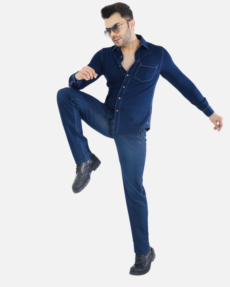 Men’s Stretch Denim Indigo Slim Fit Shirt