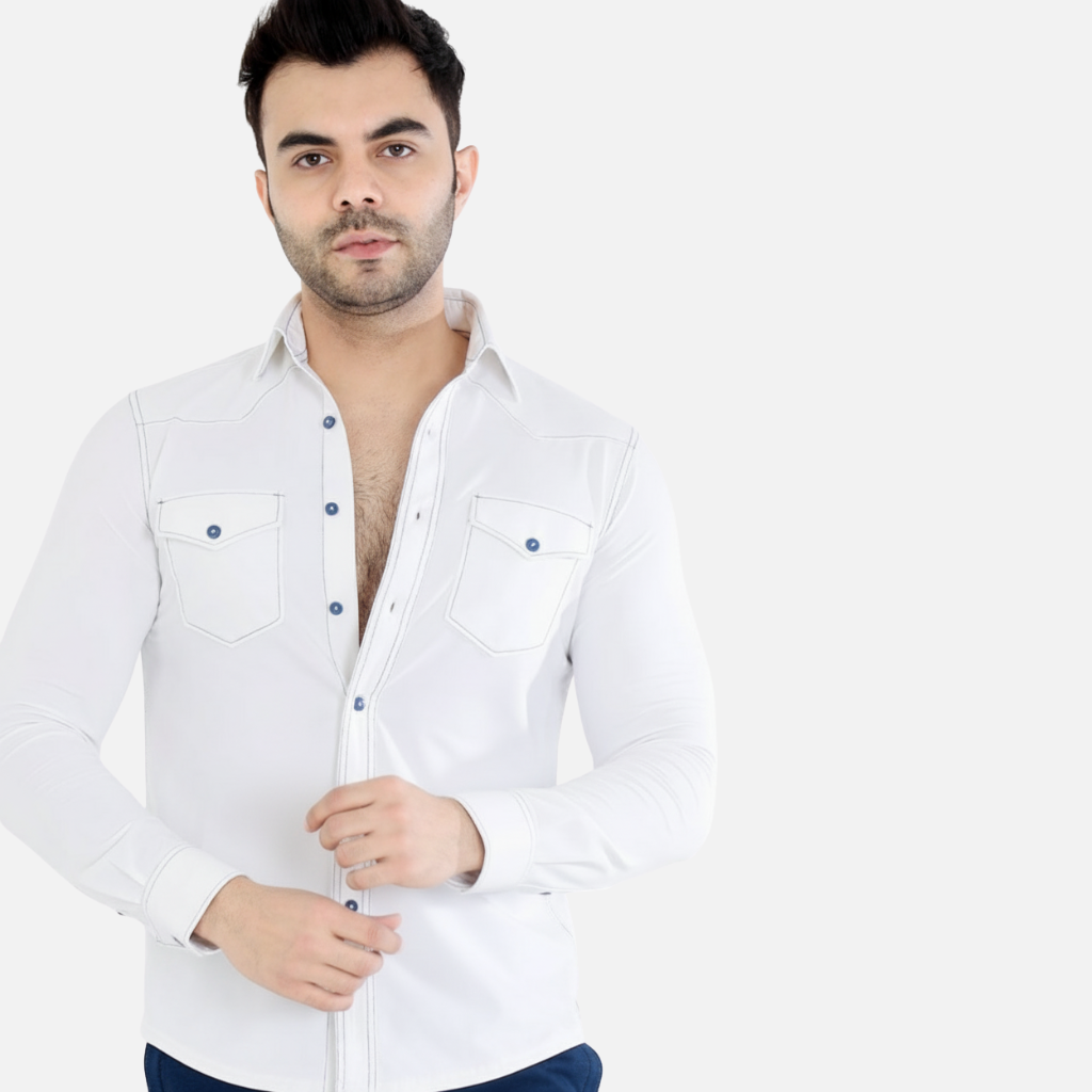 The Tulip Comfort Wear Men’s Classic White Stretch Shirt is the ultimate evolution of a wardrobe staple. While it carries the timeless appeal of a crisp white shirt, it is engineered with a utility-inspired edge and performance-driven flexibility. Designed for the man who moves constantly from professional settings to social environments, this "Smart All-Day" shirt features functional flap pockets and subtle contrast detailing, ensuring you look sharp without the stiffness of traditional formal wear.