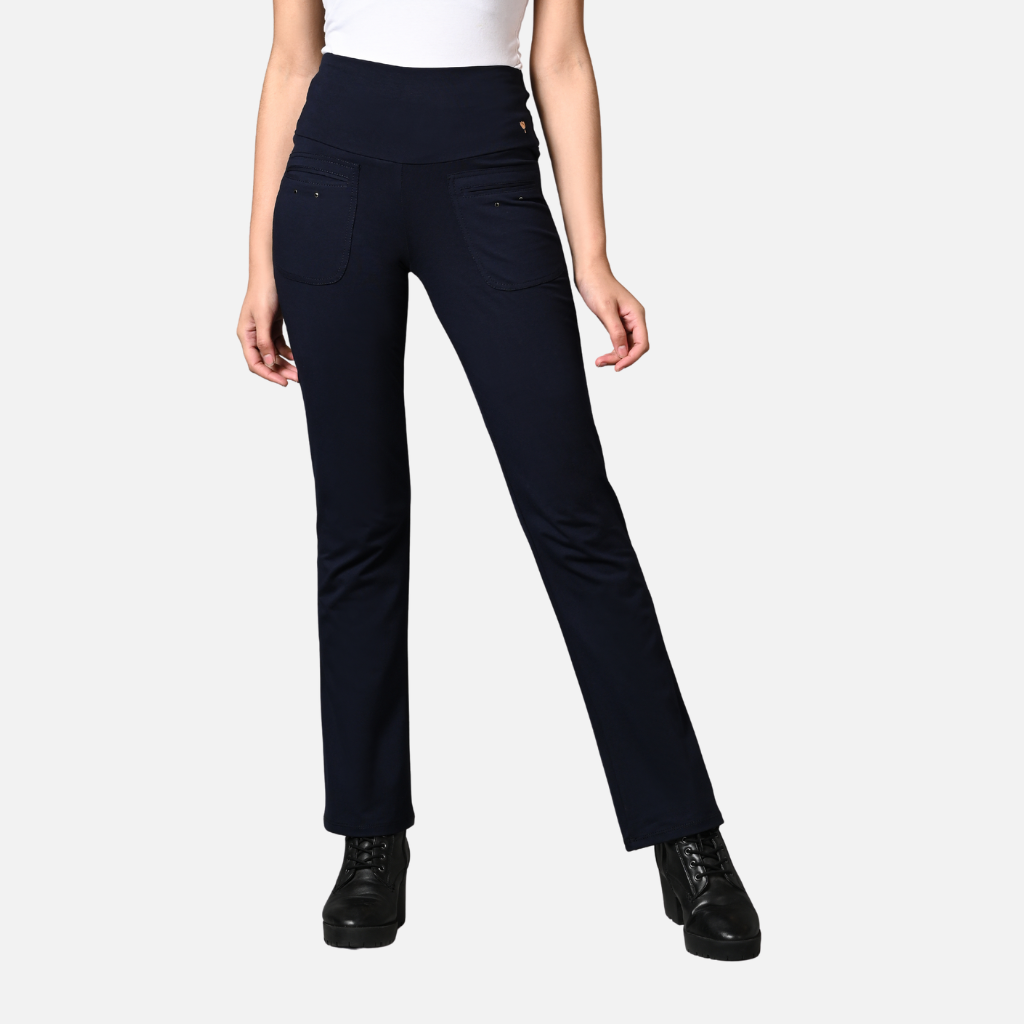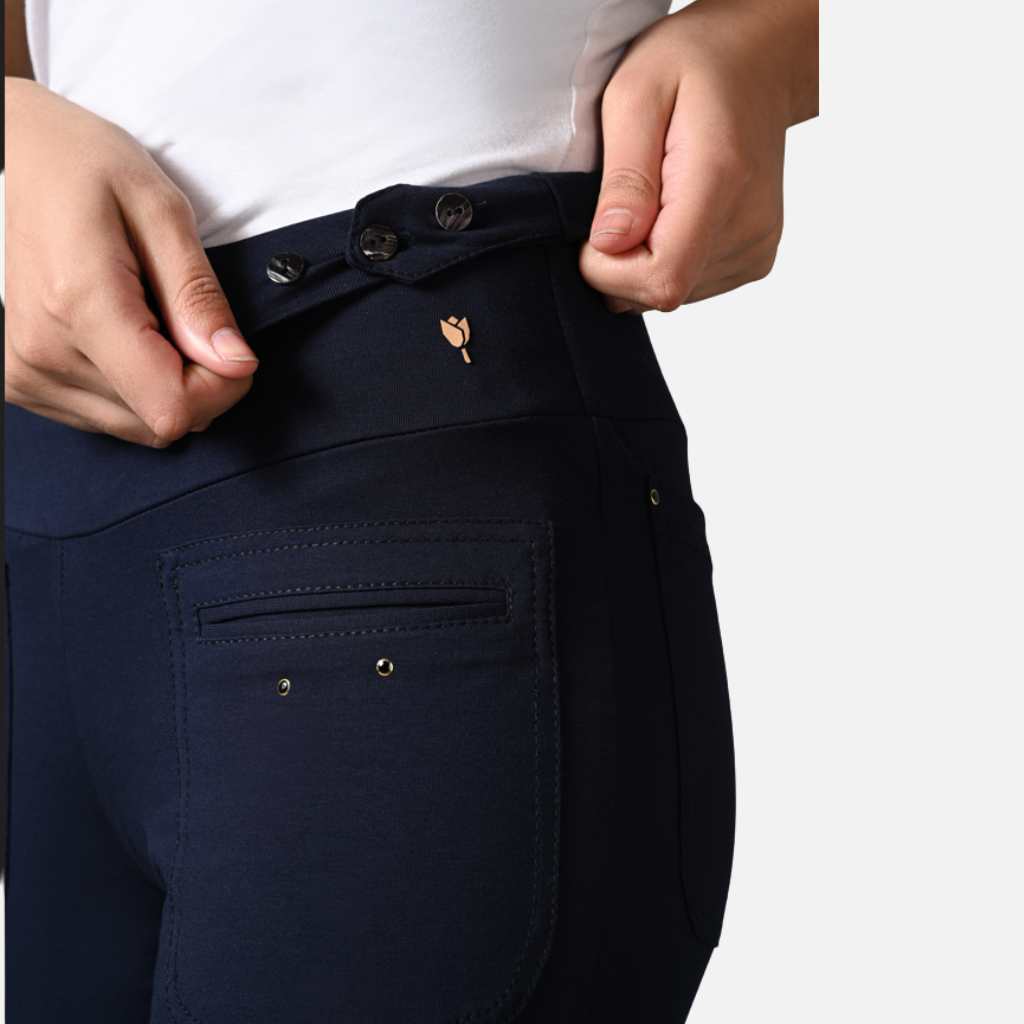 The Tulip Comfort Wear Navy Superior Cotton Stretch Gentle Bootcut Pants are designed for the woman who balances a busy schedule with a need for ease. They offer a clean, structured look that transitions naturally from morning meetings to evening social hours. Crafted from a premium cotton-rich stretch fabric, this pair provides the look of tailored trousers with the soft, breathable feel needed for all-day wear.