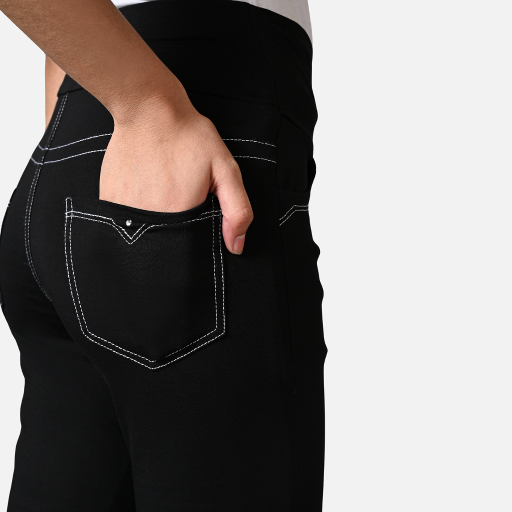 The Double Stitch Black Cotton Stretch Pants: Design & Details