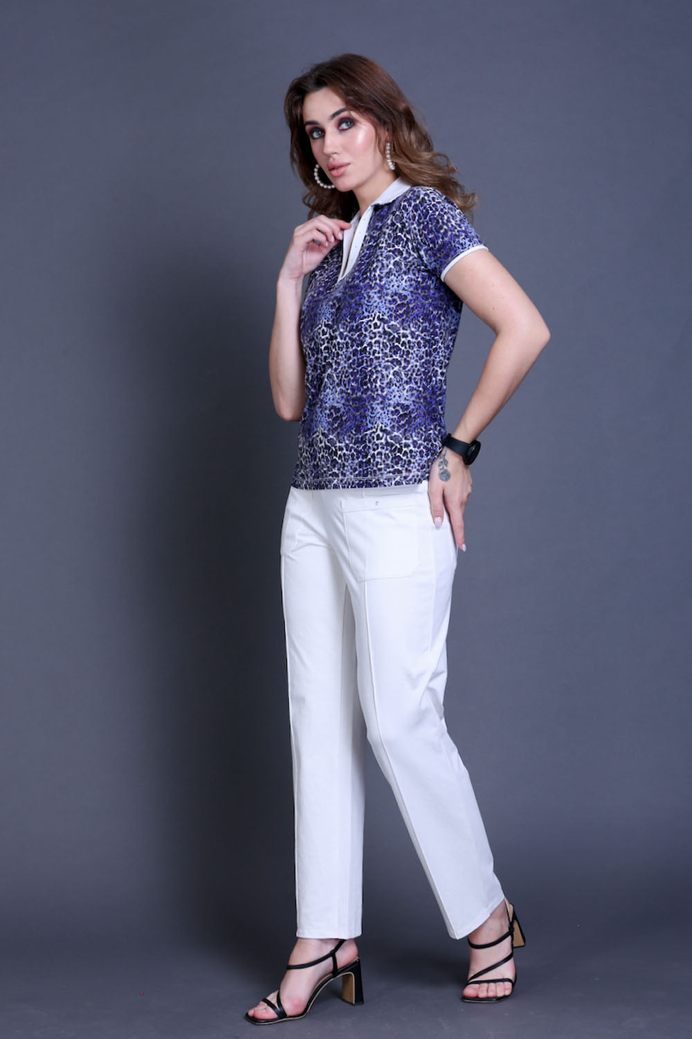 Purple Leopard Print Cotton T-Shirt with Swarovski Collar