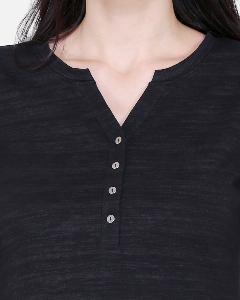 Black Texture V Neck Stretch Top