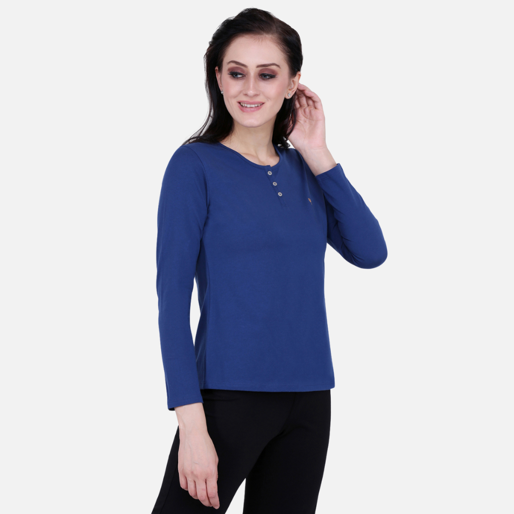 The Tulip Comfort Wear Plain Royal Blue Round Neck Stretch Top is designed for the woman who balances a busy schedule with a need for ease. It offers a clean structured look that transitions naturally from morning errands to evening social hours. Crafted from a premium cotton rich stretch fabric, this top provides a vibrant, bold royal blue profile with the soft, breathable feel needed for all-day wear.