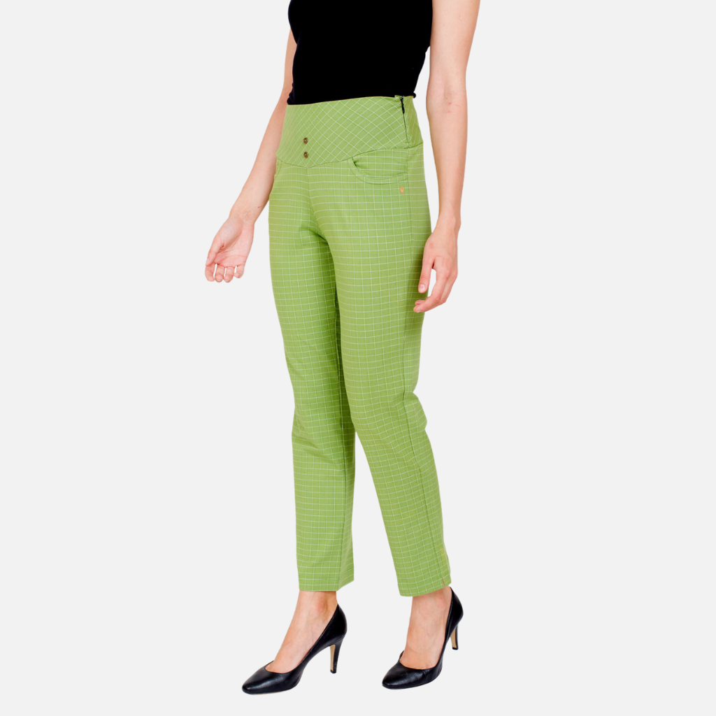 The Bright Green Urban Checks Stretch Pants: Design & Details