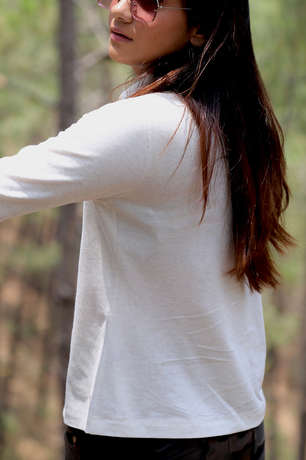 Fabric: Cotton rich with subtle hints of silver lurex woven in the fabric