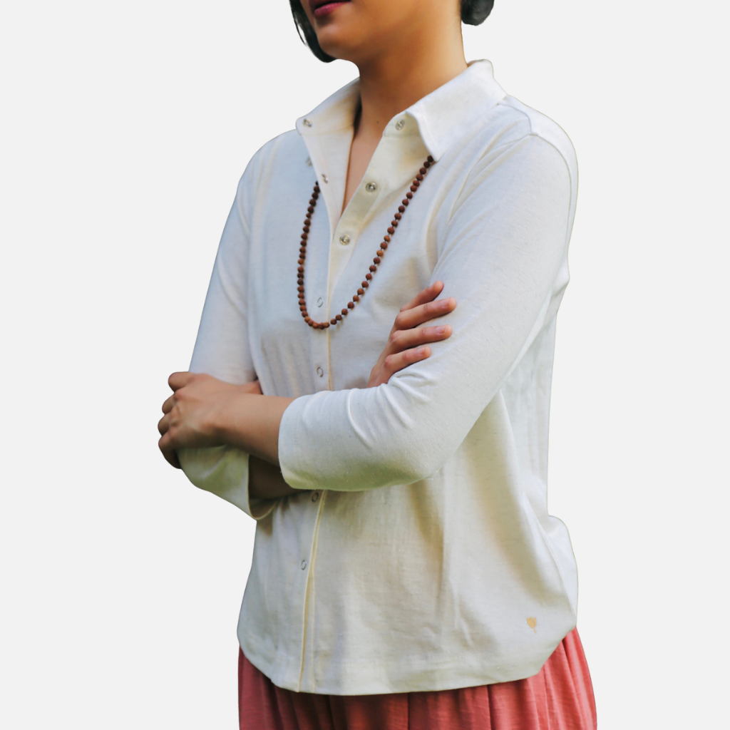 The Tulip Comfort Wear White Silver Woven Stretch Shirt is designed for the woman who balances a busy schedule with a need for ease. It offers a clean structured look that transitions naturally from morning meetings to evening social hours. Crafted from a premium cotton rich stretch fabric with silver lurex intricately woven in, this shirt provides a subtle luminous shimmer with the soft, breathable feel needed for all-day wear.