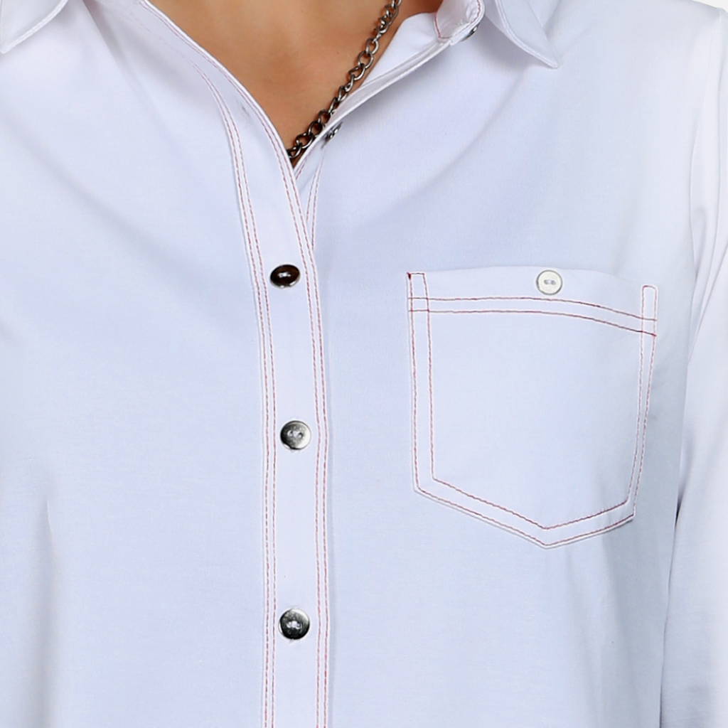 The White Stretch Shirt with Red Stitch Details: Design & Details