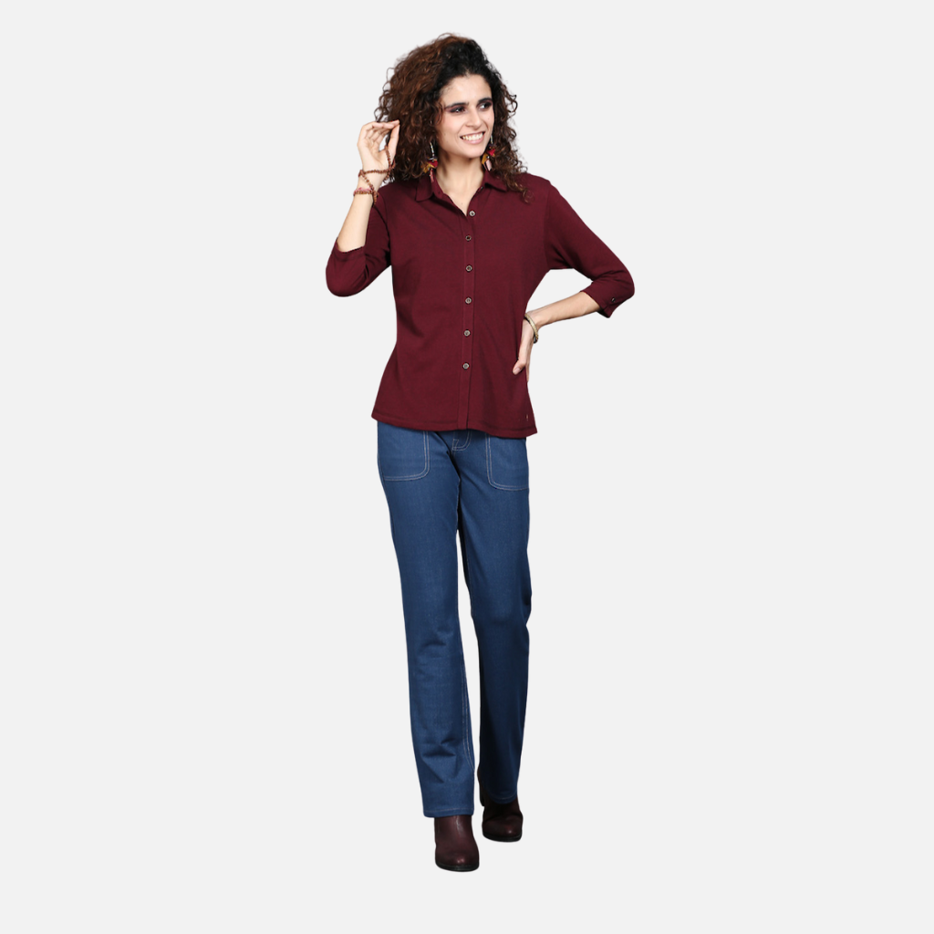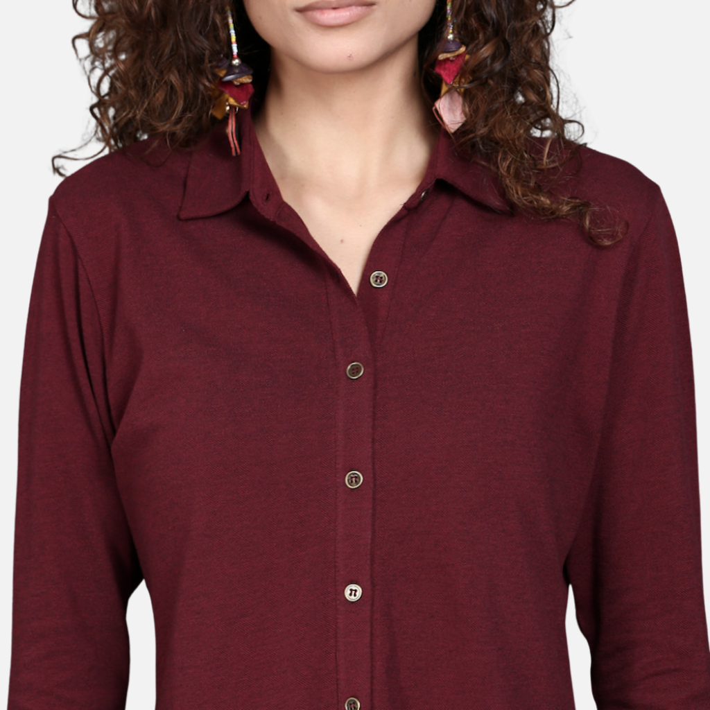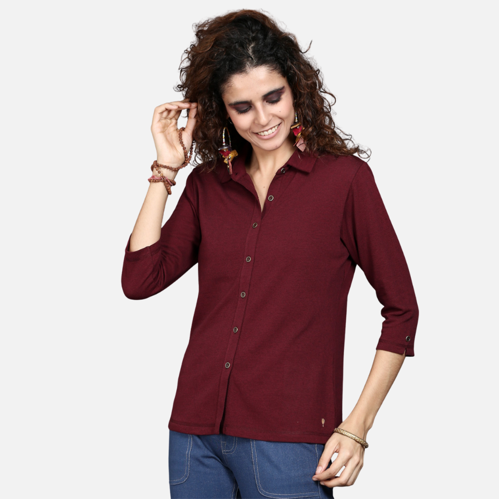 The Tulip Comfort Wear Wine Stretch Shirt is designed for the woman who balances a busy schedule with a need for ease. It offers a clean structured look that transitions naturally from morning meetings to evening social hours. Crafted from a premium cotton rich stretch fabric, this shirt provides a deep wine hue with a sophisticated dual-tone finish and the soft, breathable feel needed for all-day wear.