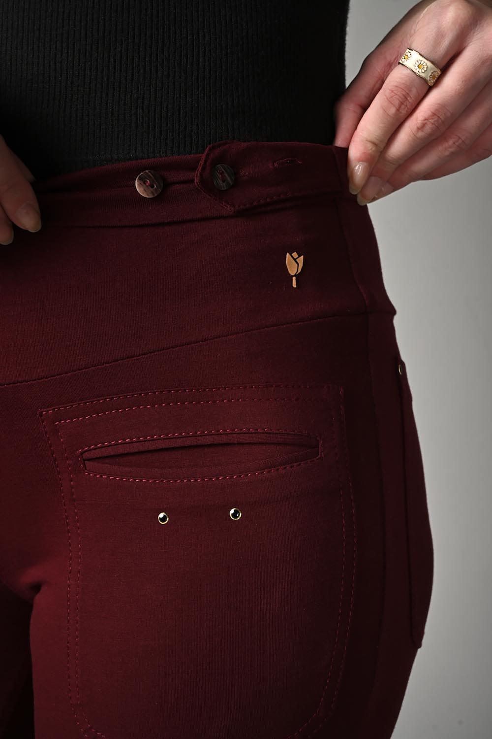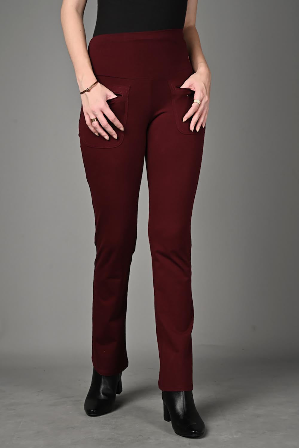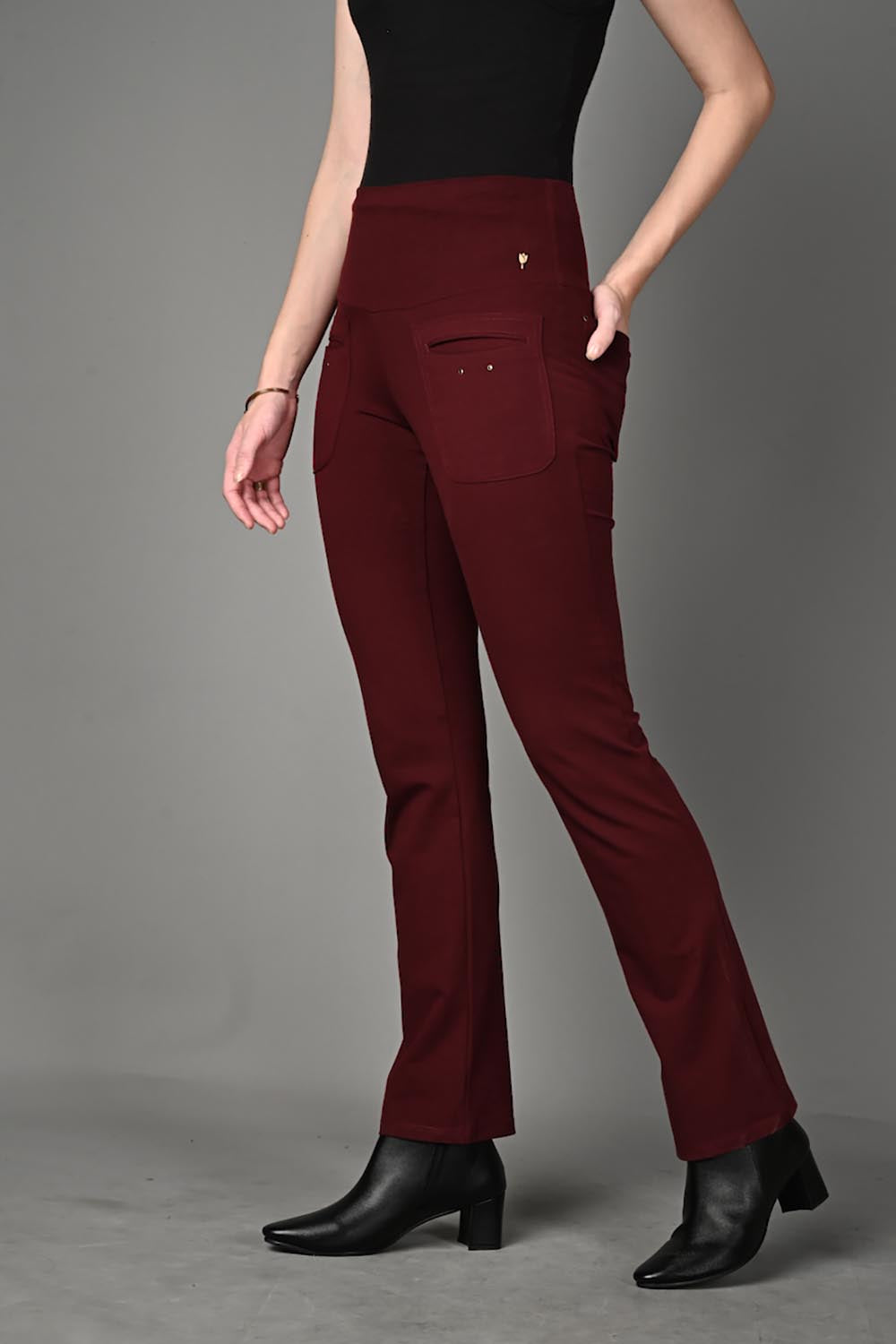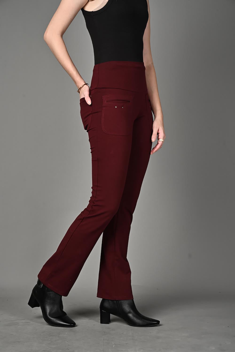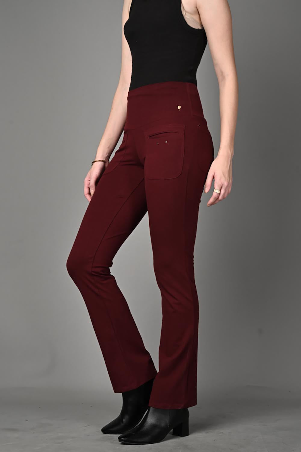 Wine Superior Cotton Stretch Flair Pants with Pockets