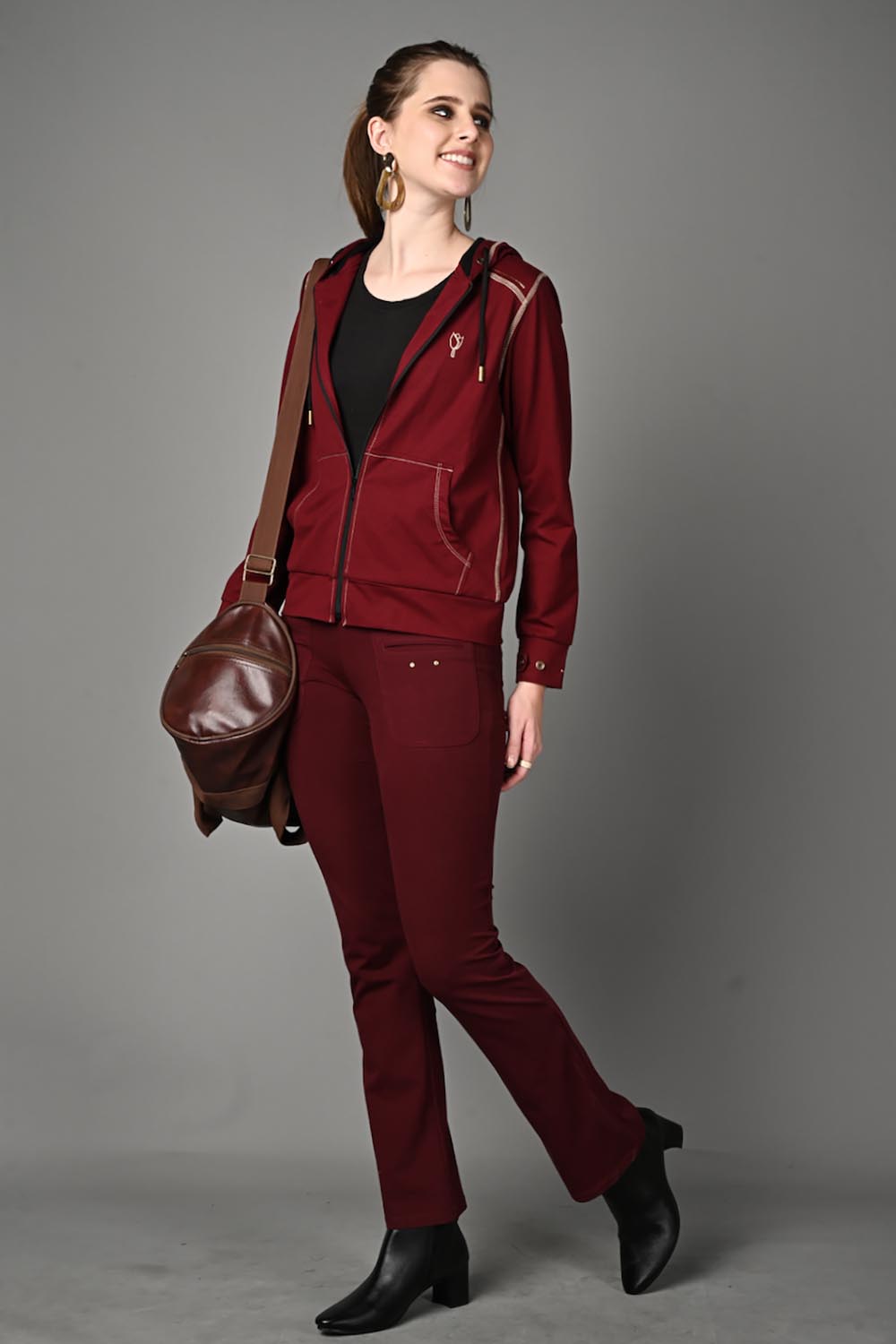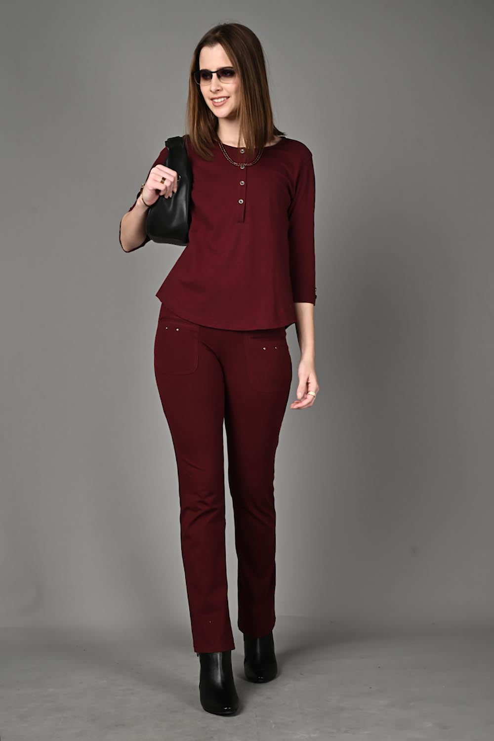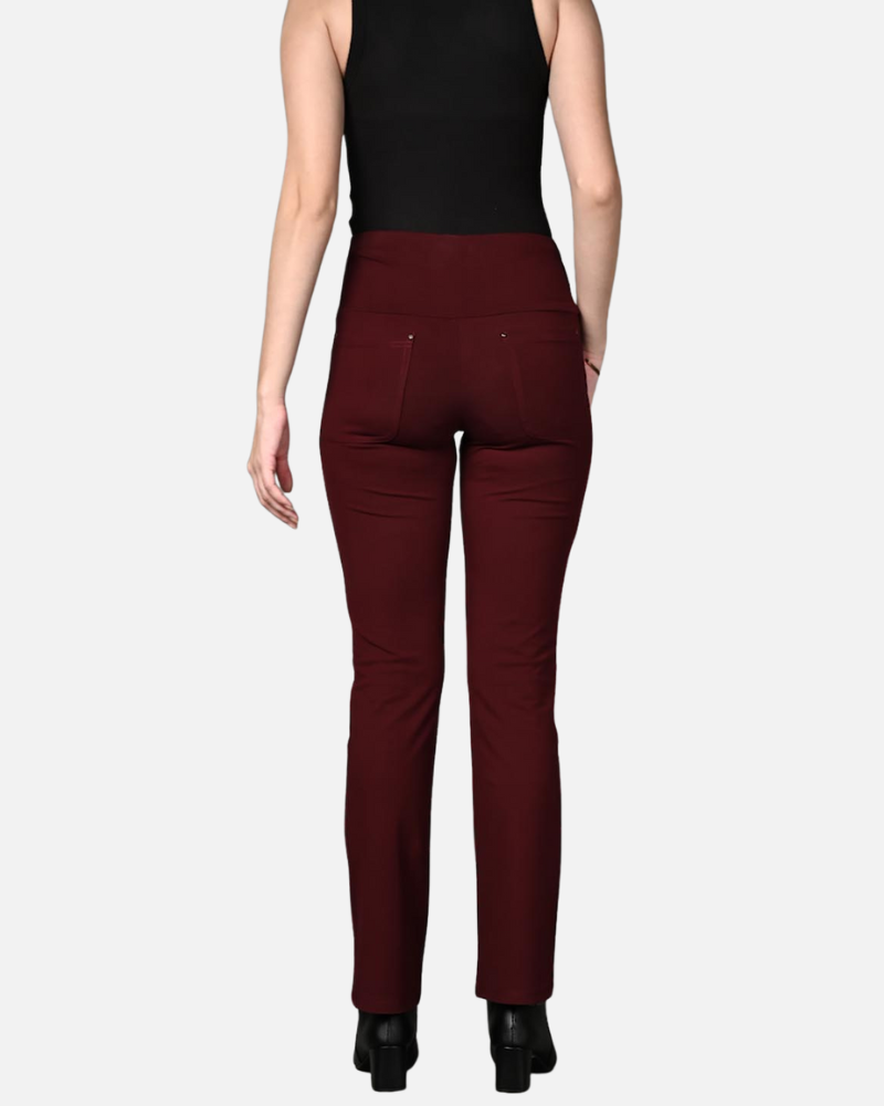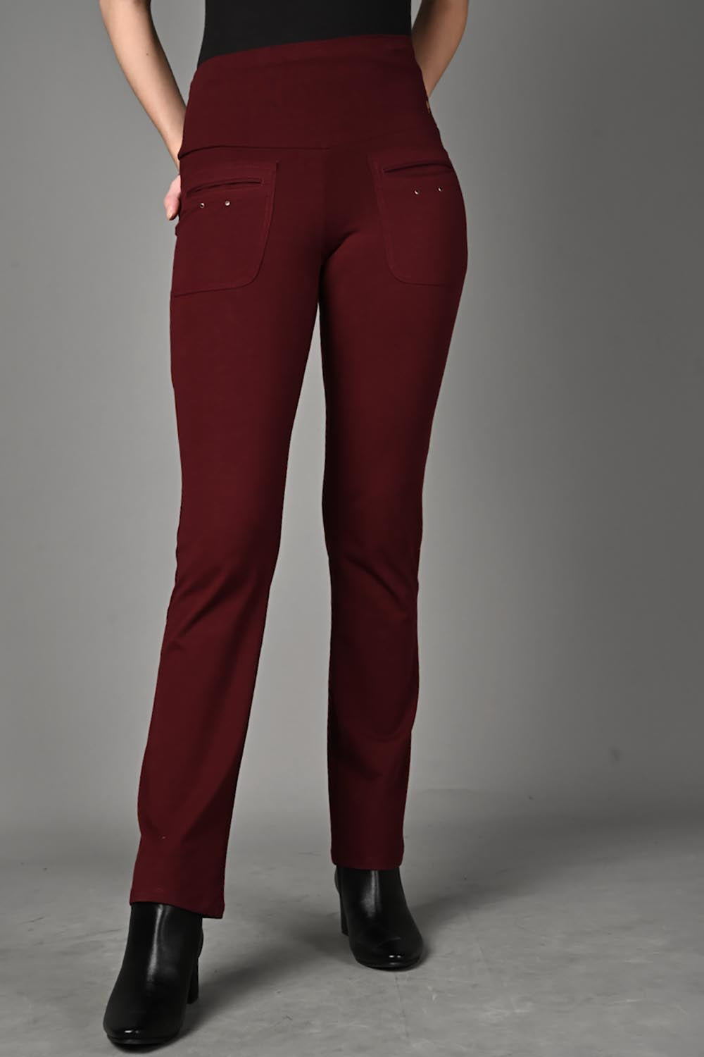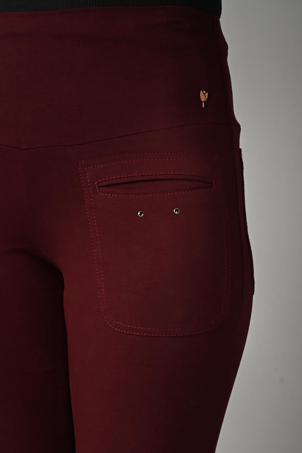 Wine Superior Cotton Stretch Flair Pants with Pockets